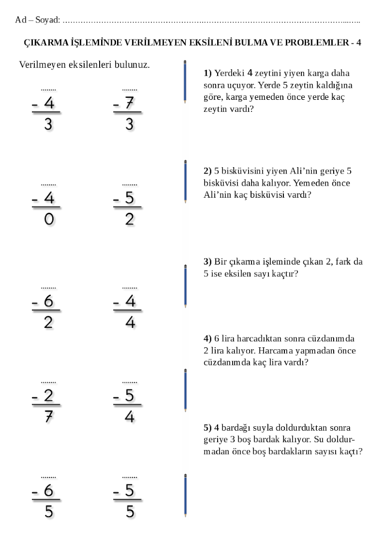 1 sinif eksileni bulma ve problemleri 2