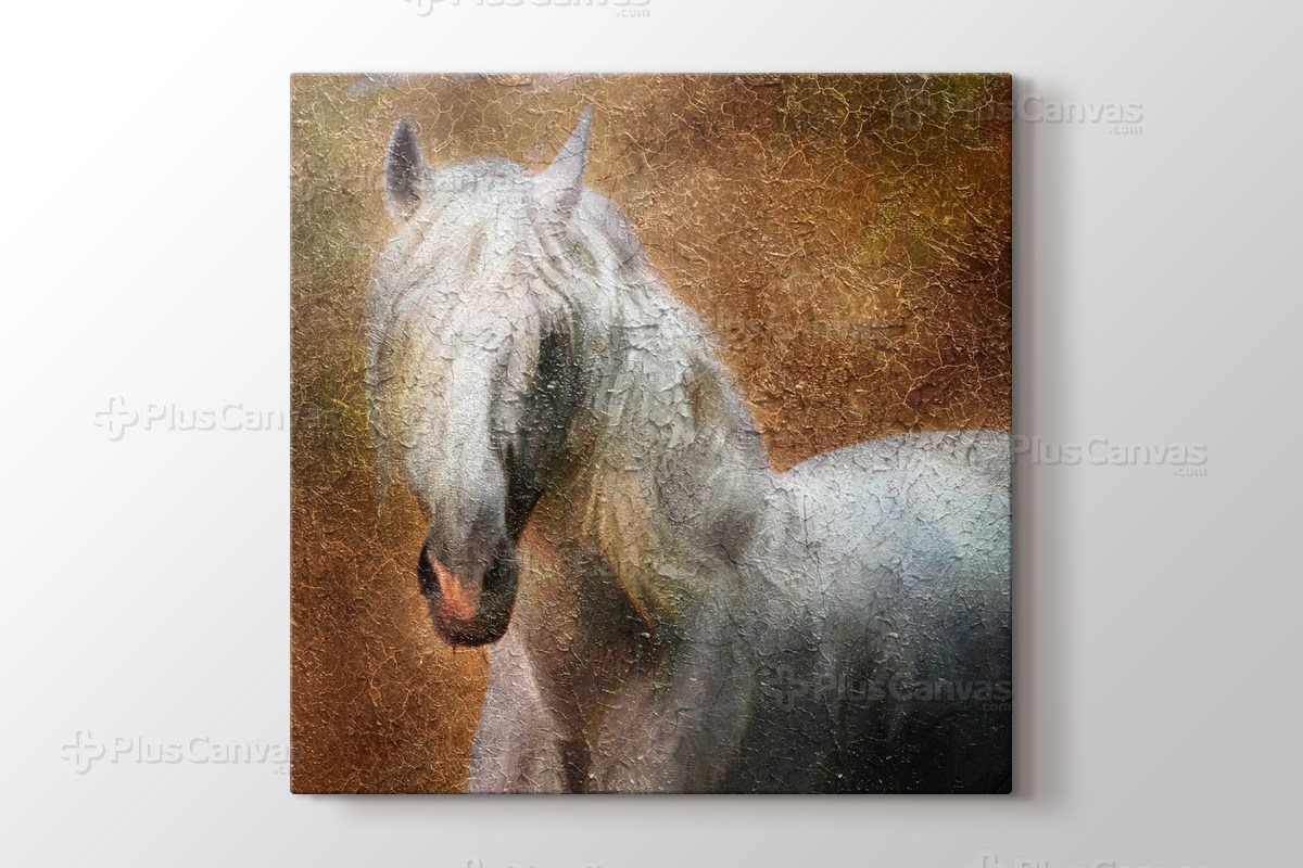 beyaz at resimli sahlanan kanvas tablo