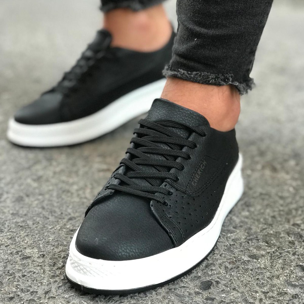 delikli model yuksek taban siyah erkek spor ayakkabi
