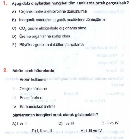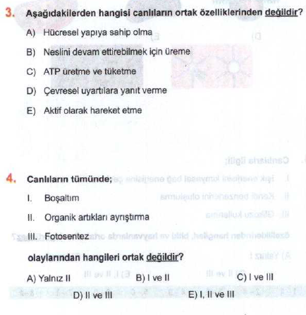 biyoloji dersi canlilarin ortak ozellikleri ile ilgili sorular