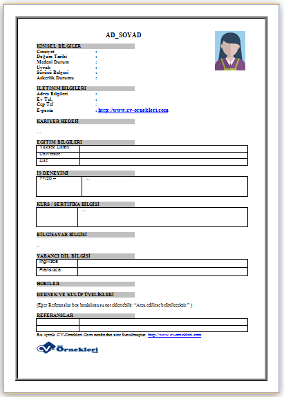 word formatinda resimli cv ornegi indir