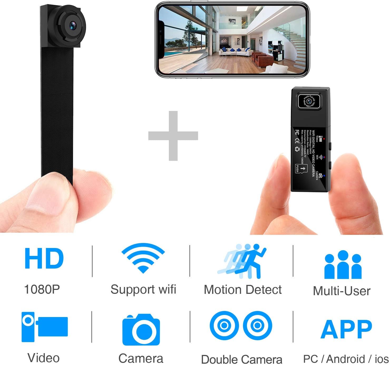spy camera wifi mini hidden camera 1080p hd portable wireless camcorder video recorder ip cameras with dual detachable lens motion detection nanny cam