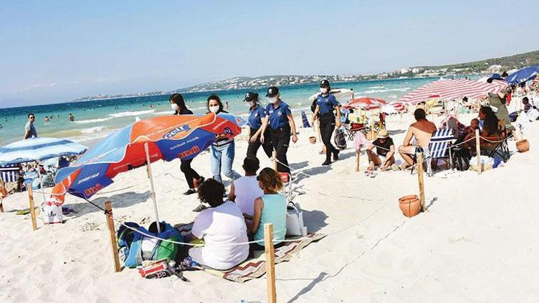 izmir cesme plaji doldu tasti maske ve