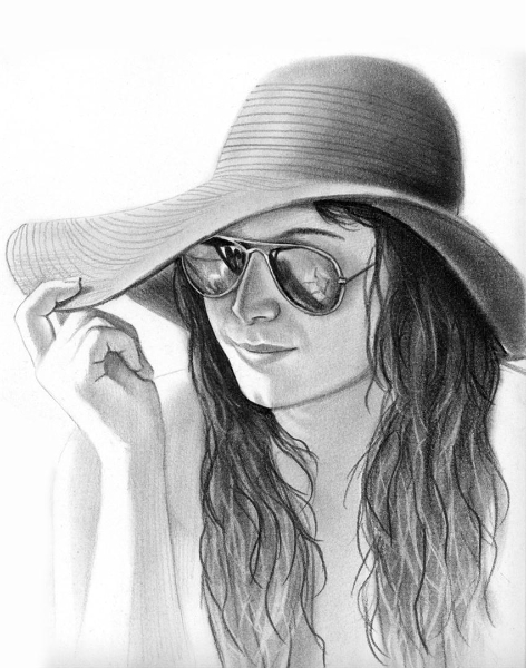 kolay karakalem sapkali guzel kiz