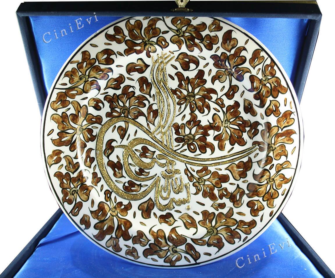 kahverengi lotus 25cm osmanli cini tabak