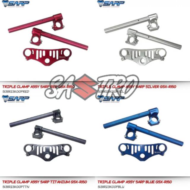 triple clamp assy sarp stang jepit segitiga atas suzuki gsx r merah biru silver titanium